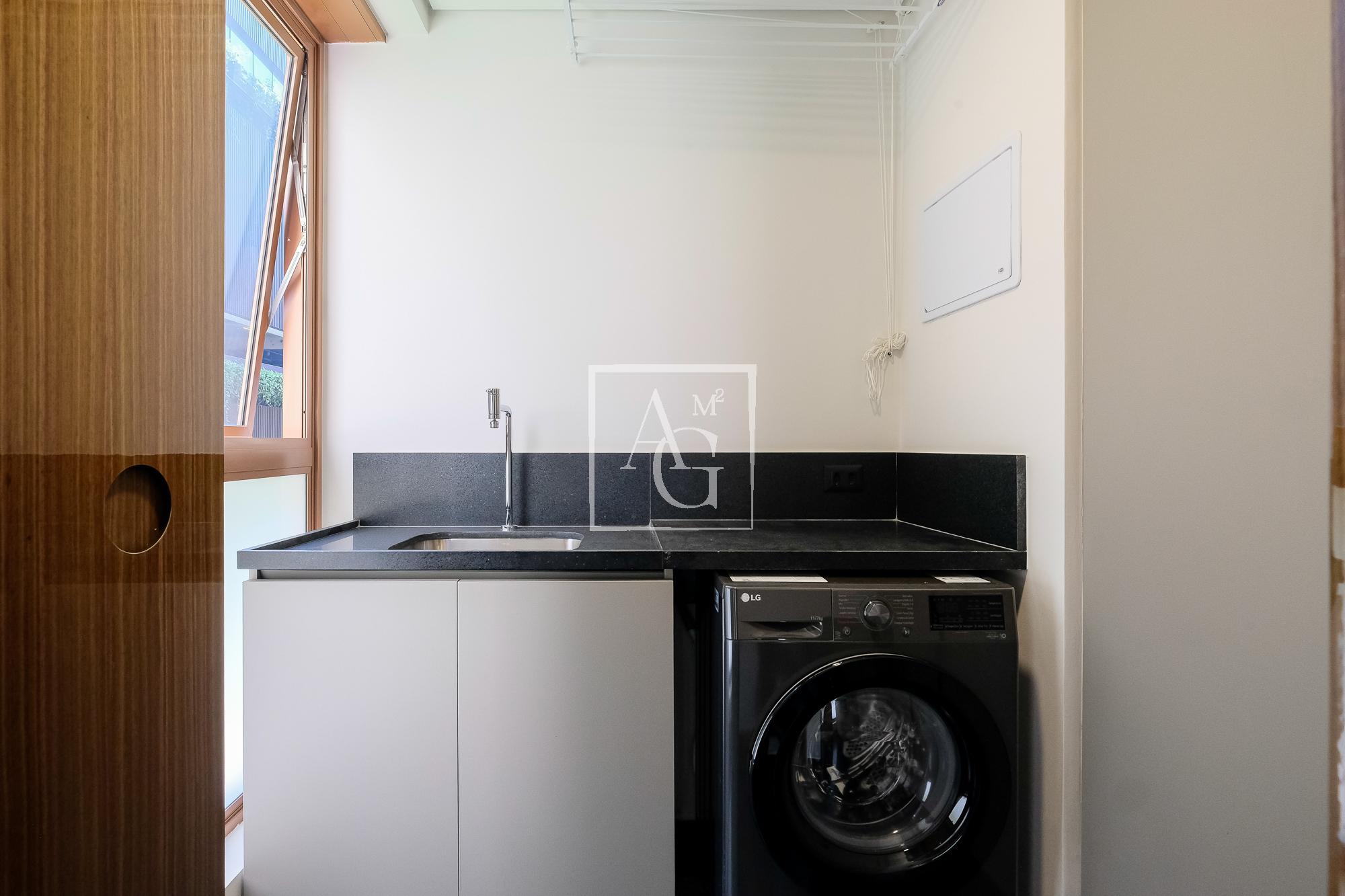 aberta, lavanderia, lavabo social, WC de serviço e 2 vagas