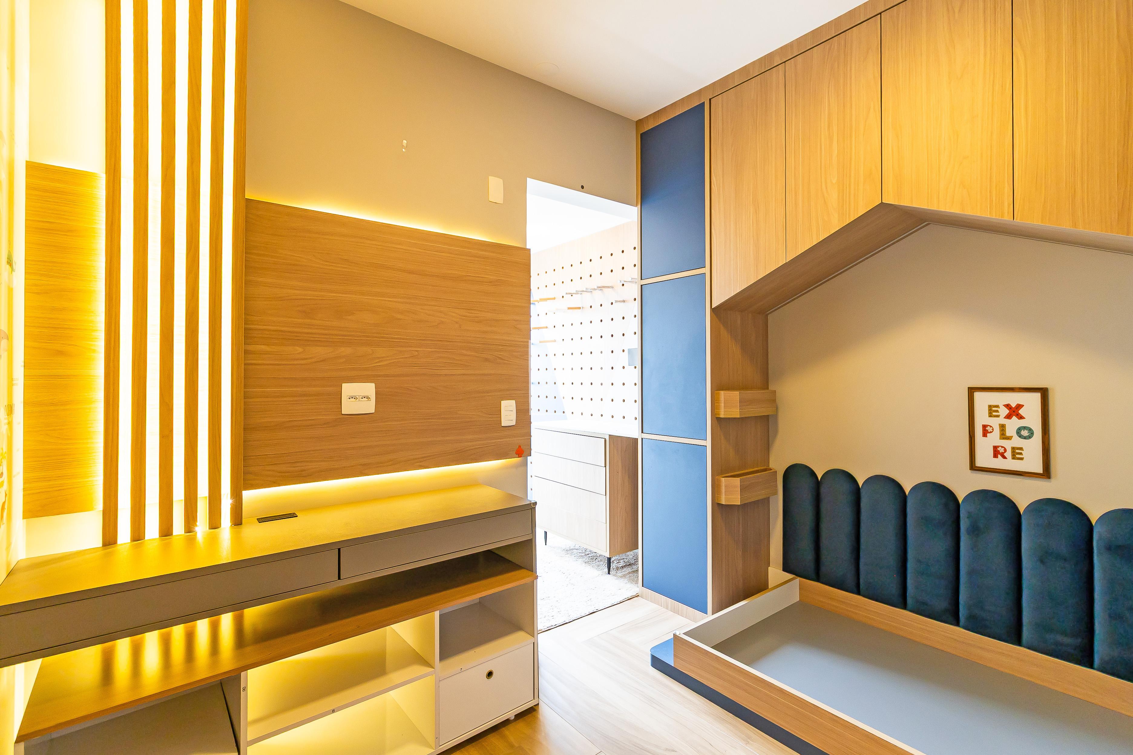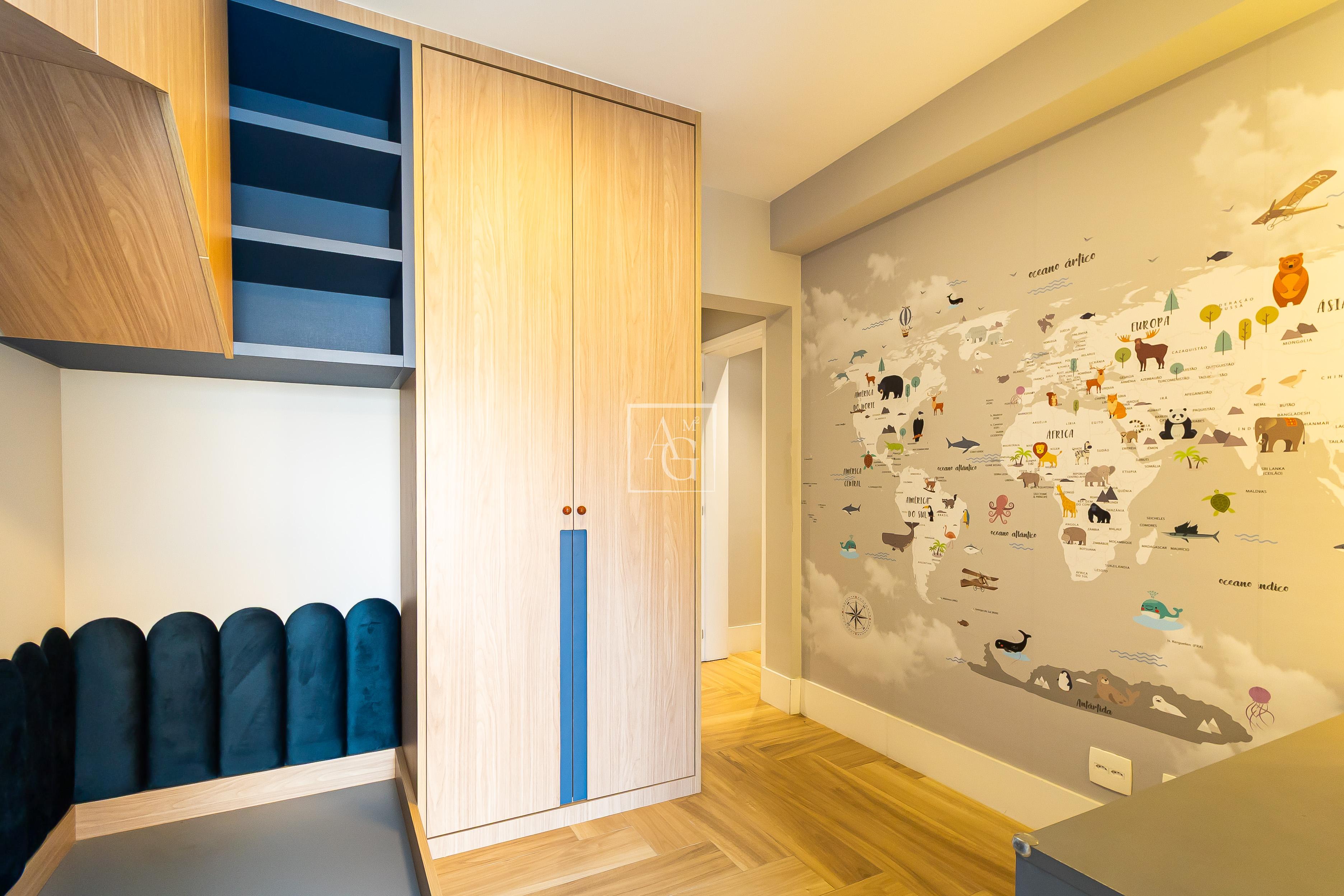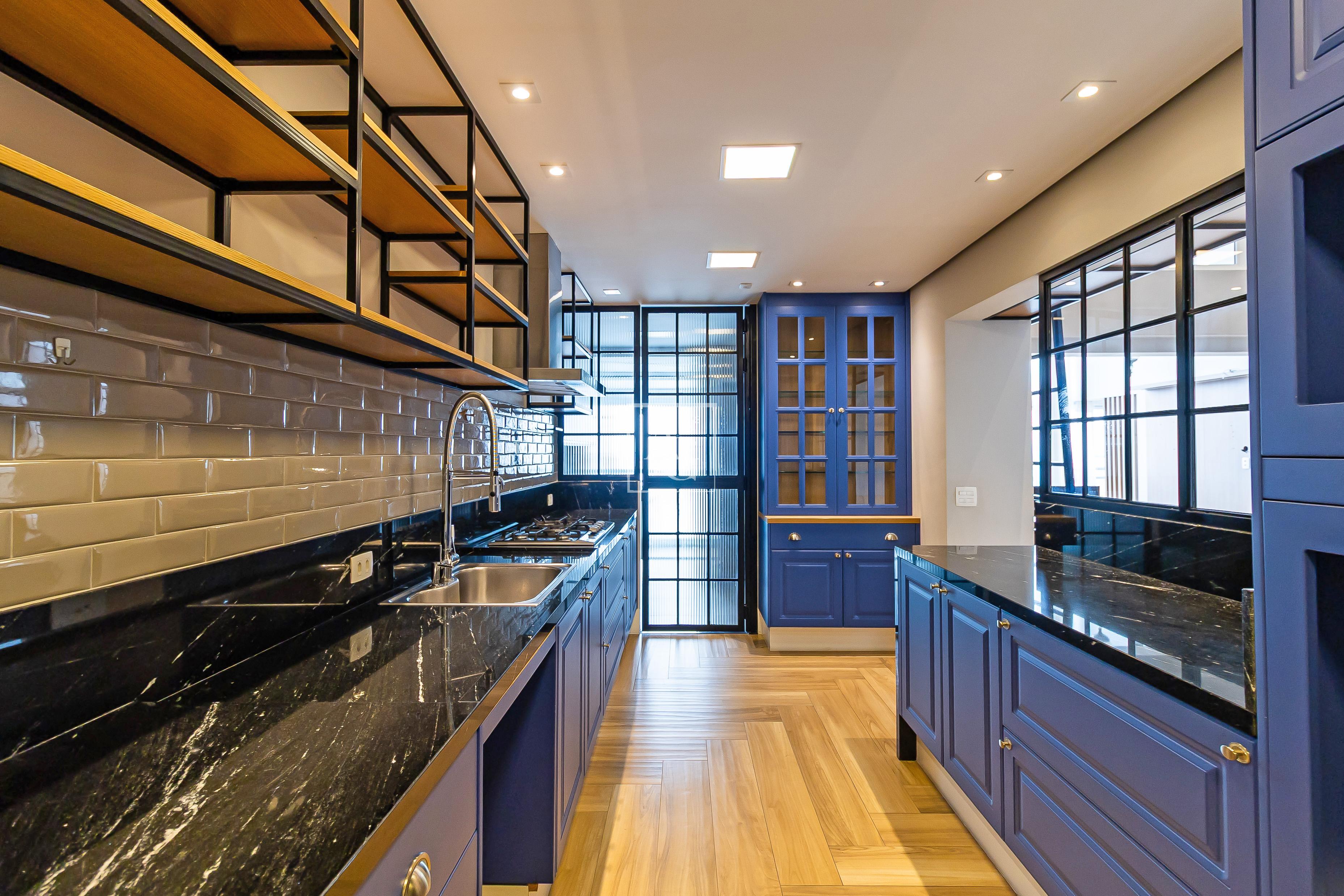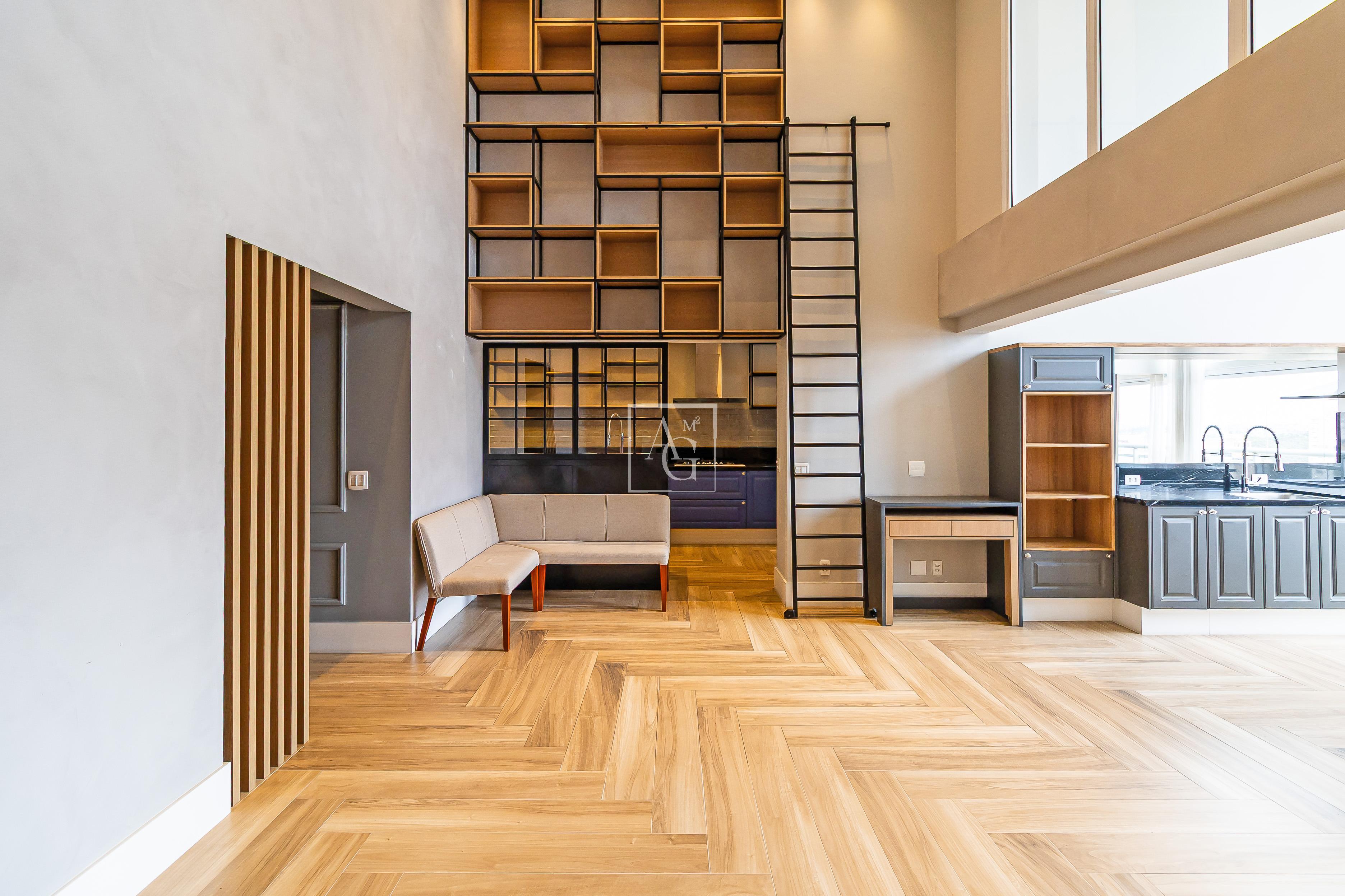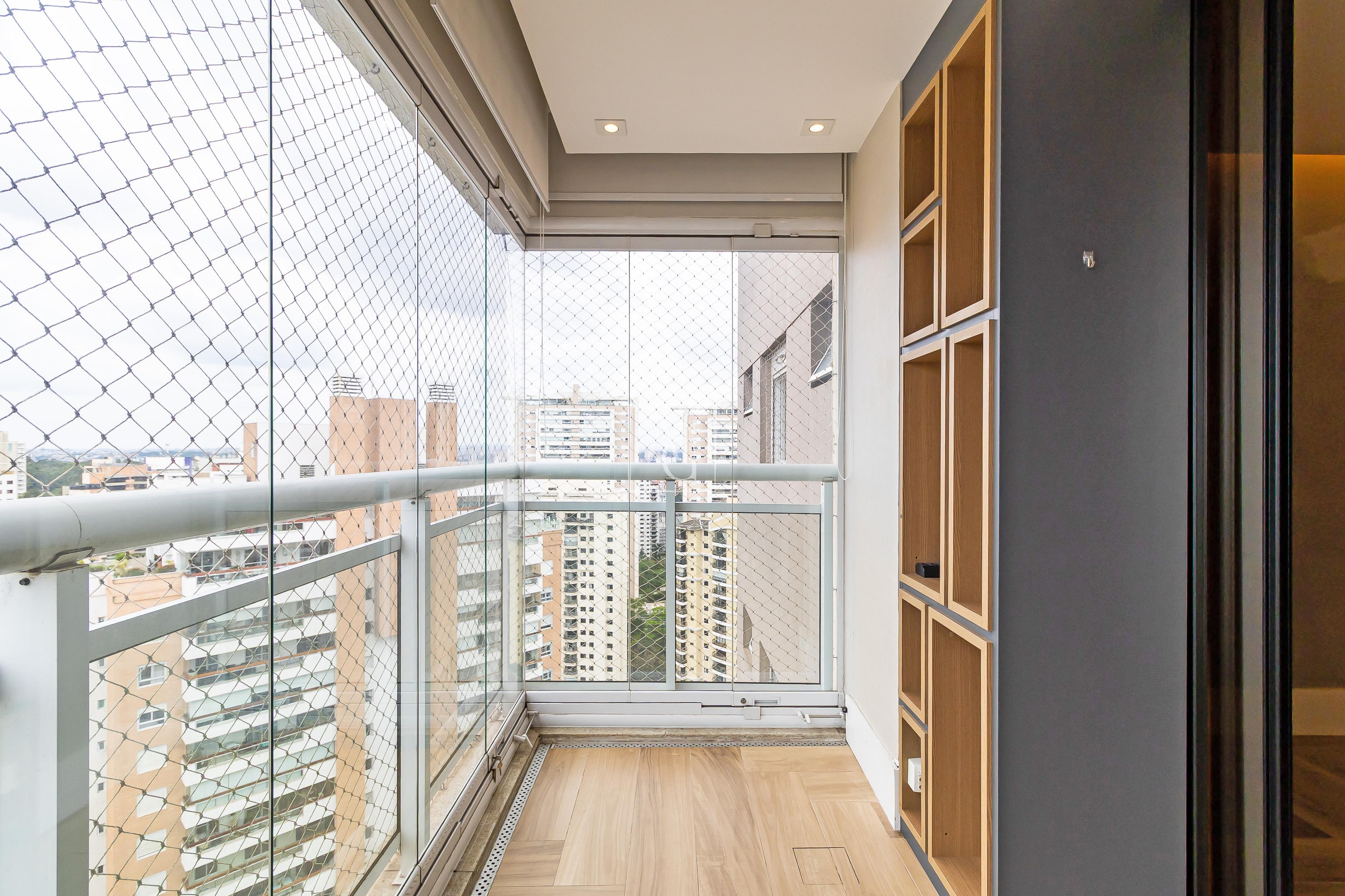 A unidade possui armários planejados nos quartos, banheiros e cozinha, além de closet, chuveiro a gás e área de serviço funcional.