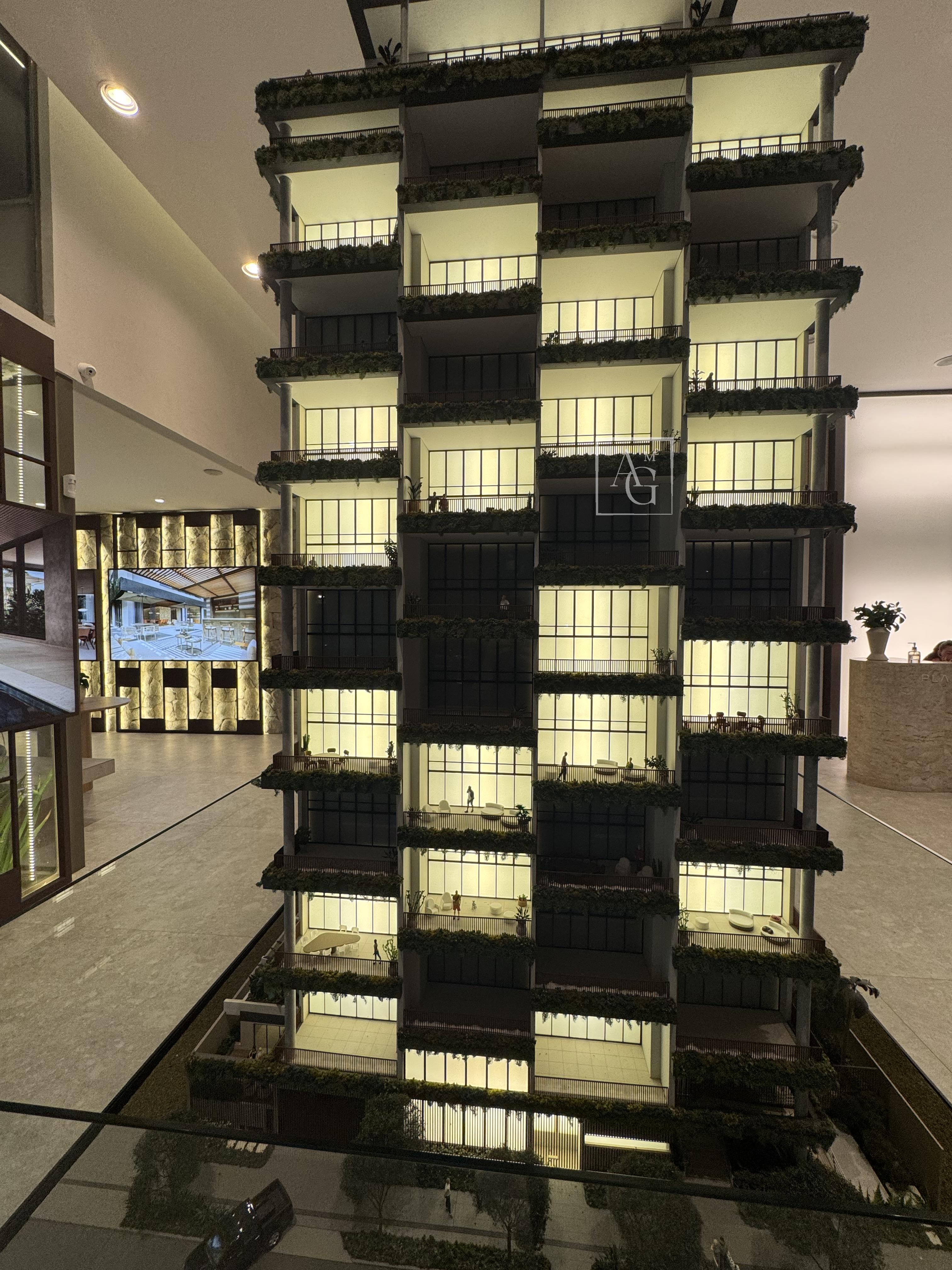São 36 apartamentos tipo, com áreas de 207 e 208 m², quatro suítes e três vagas de garagem demarcadas, além de duas coberturas duplex de 445 e 447 m², com quatro suítes e quatro vagas. Cada detalhe foi planejado para garantir integração entre os ambientes, excelente iluminação natural e conforto acústico.