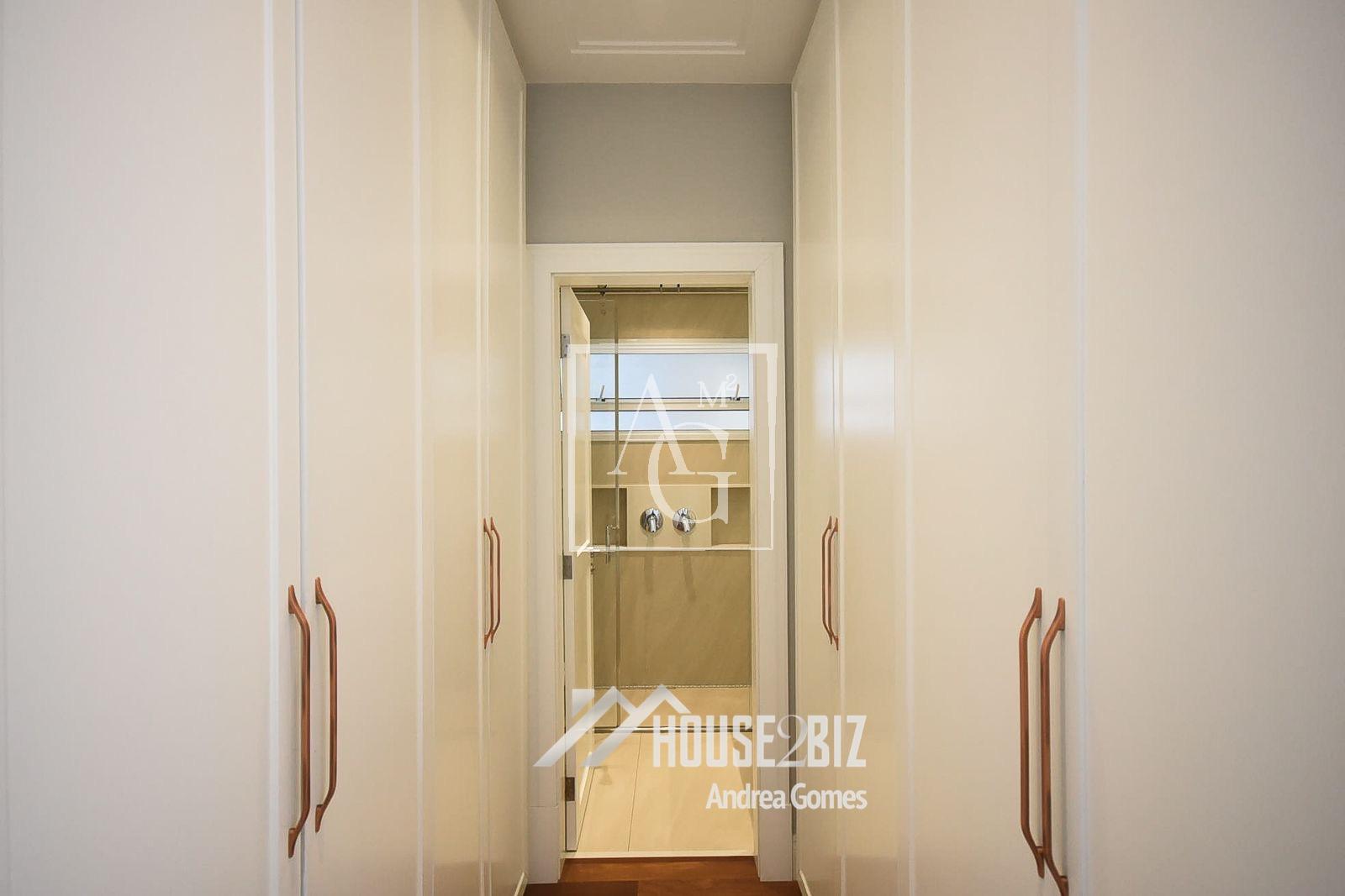 Está com três suítes, sendo que uma delas pode ser integrada com a suite master, tornando-se completa com dois closets e banheiro Sr e Sra.