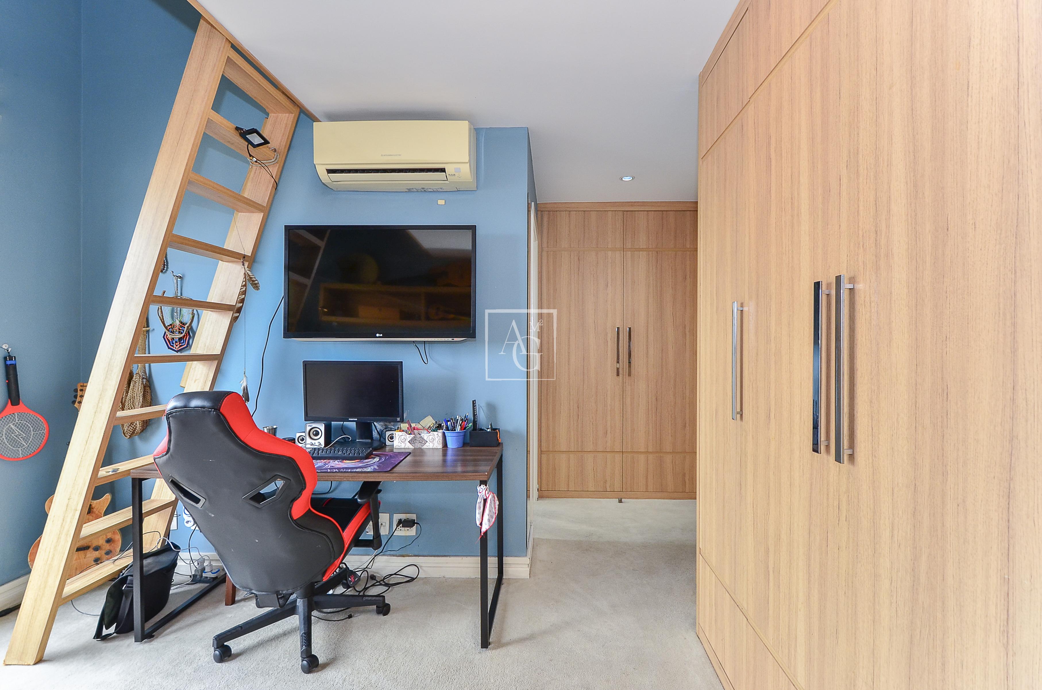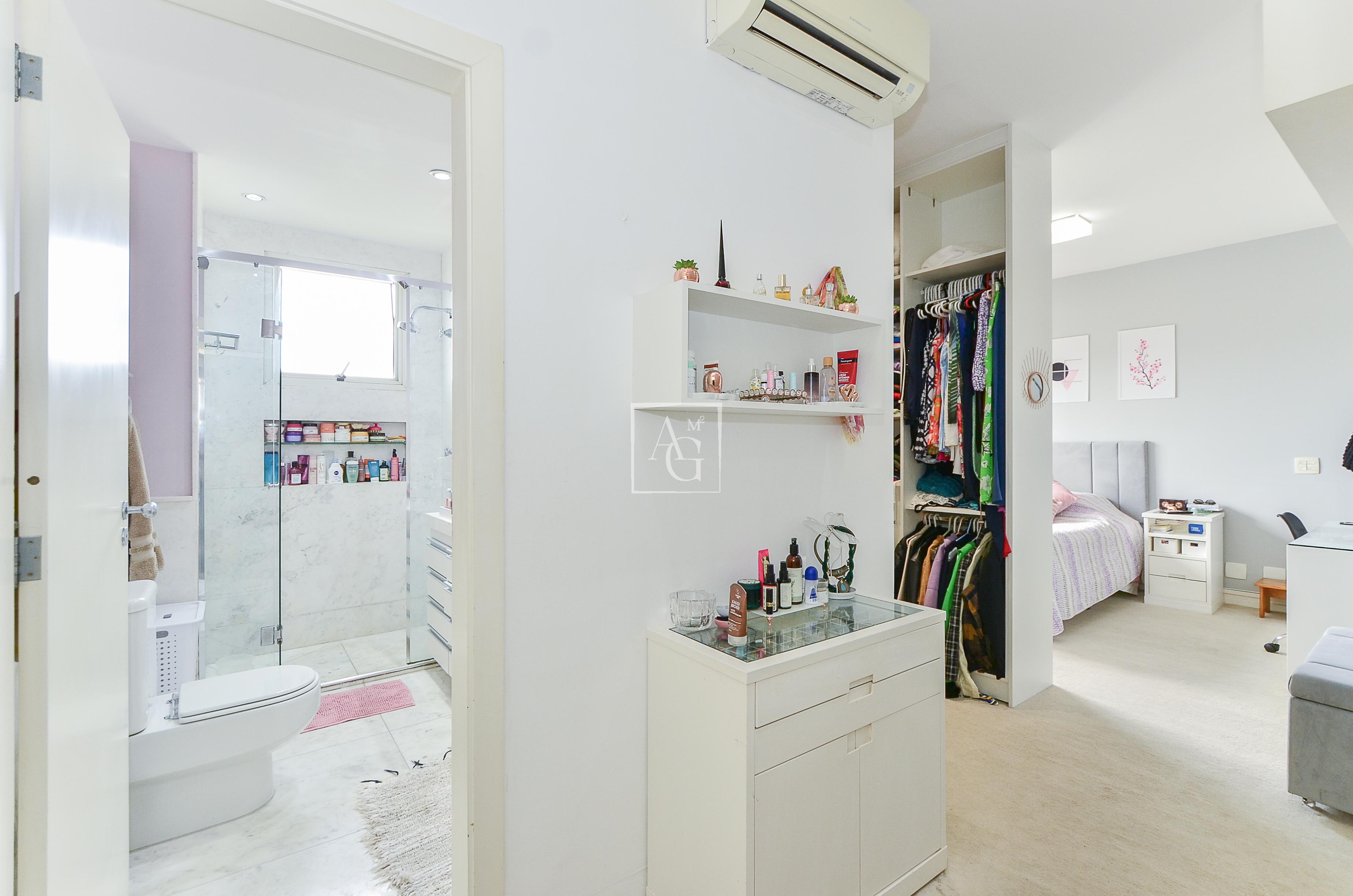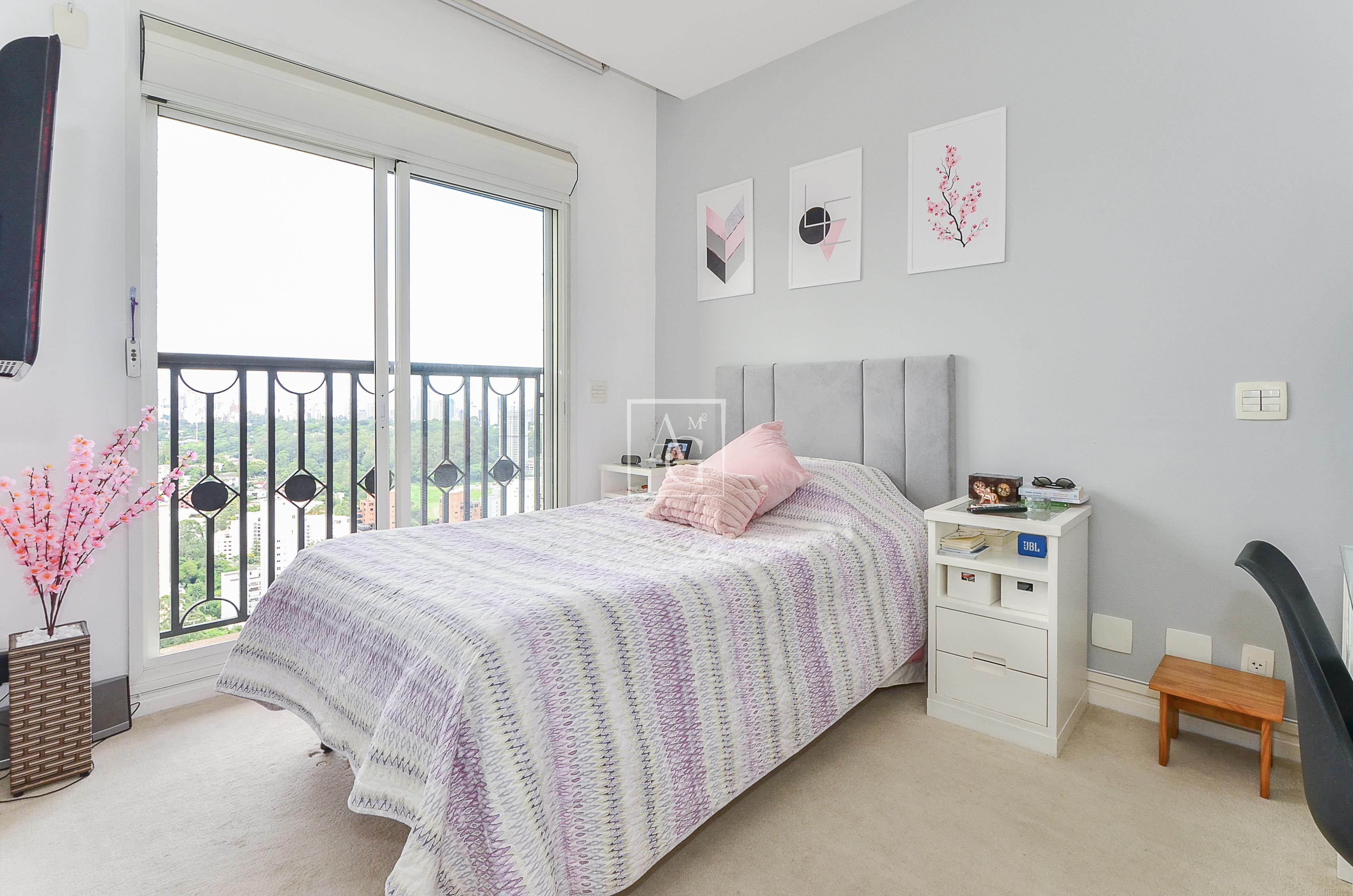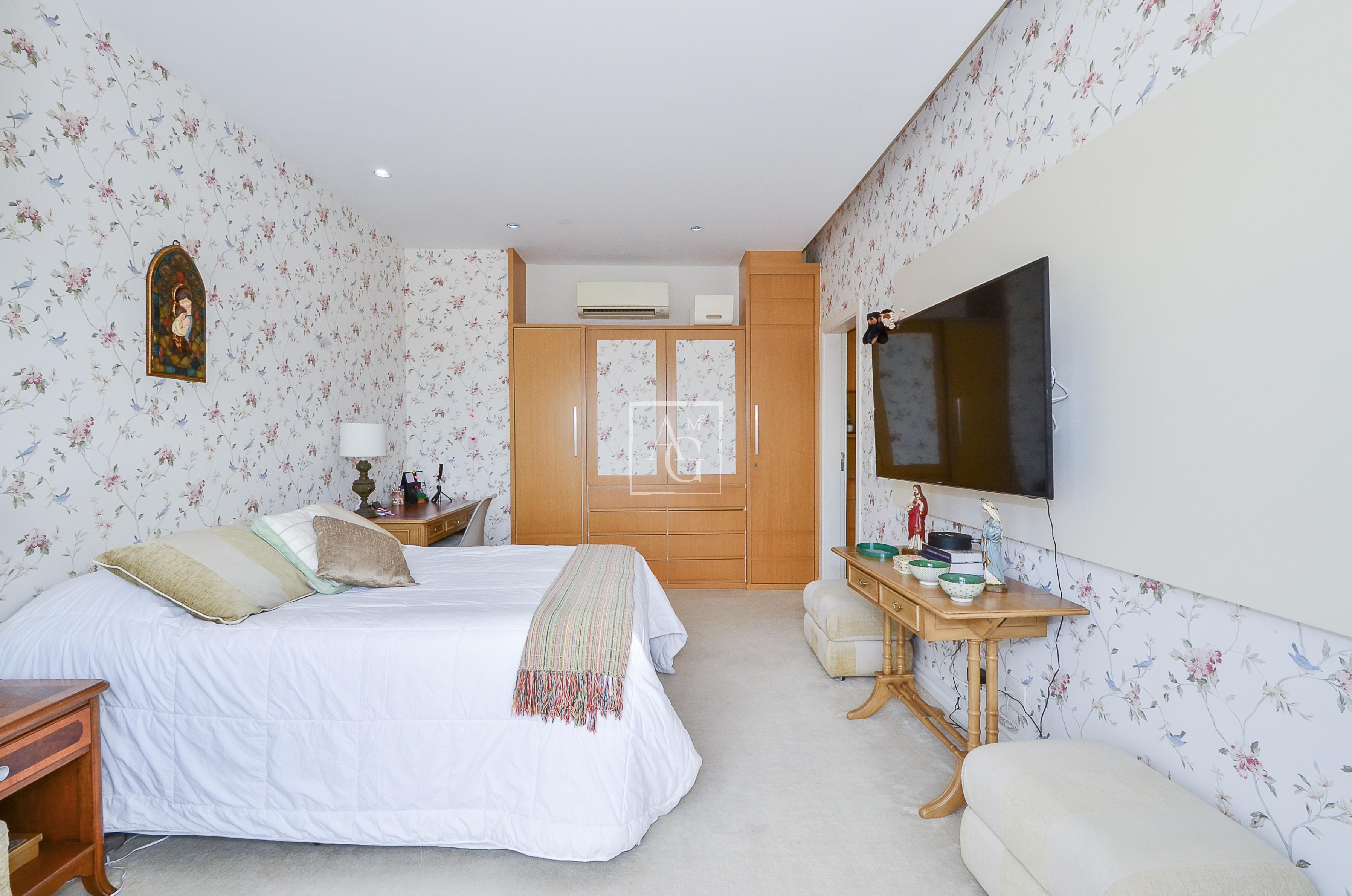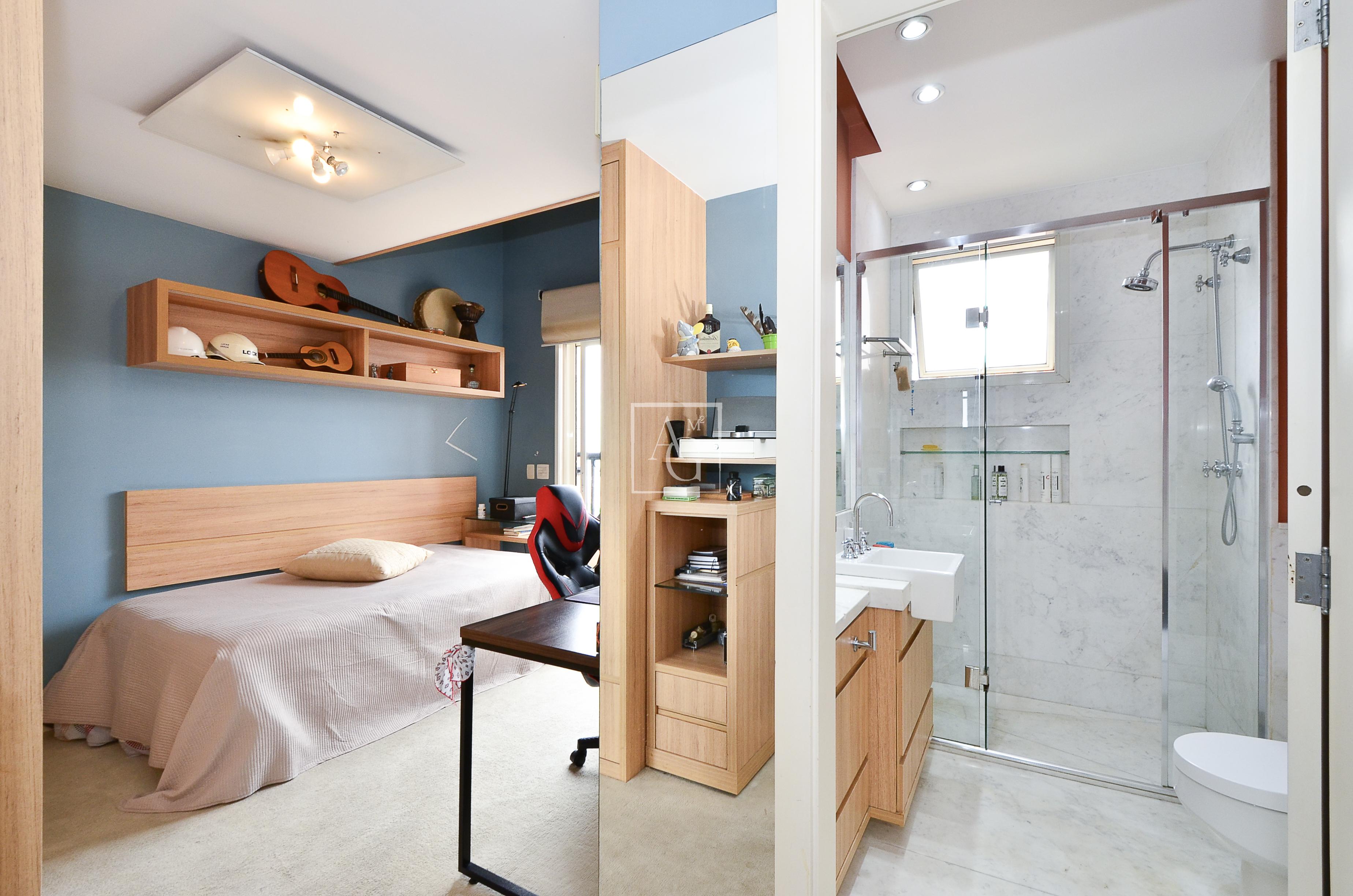 Cada suíte é espaçosa o suficiente para acomodar cama, armários e área de descanso.
