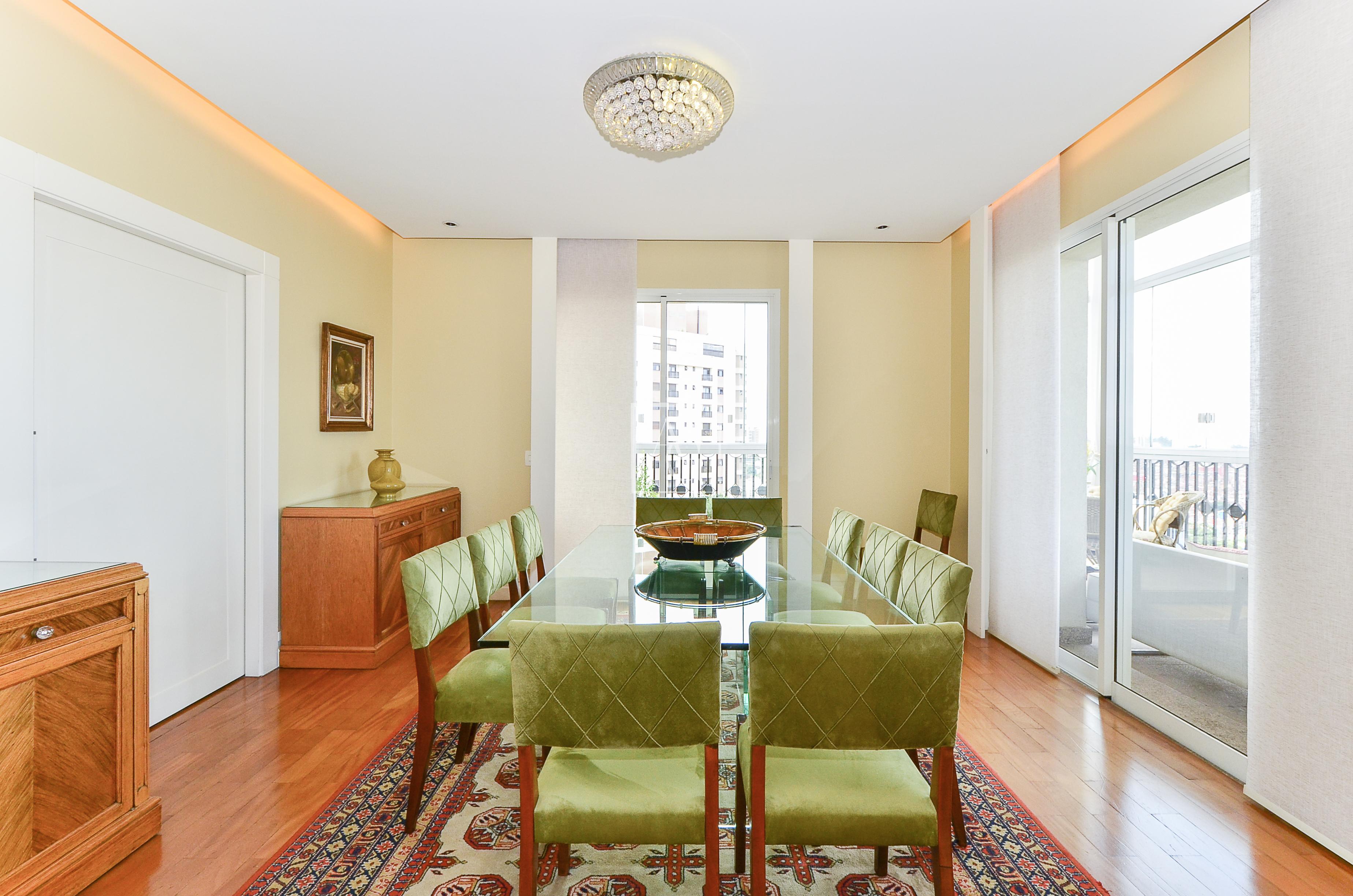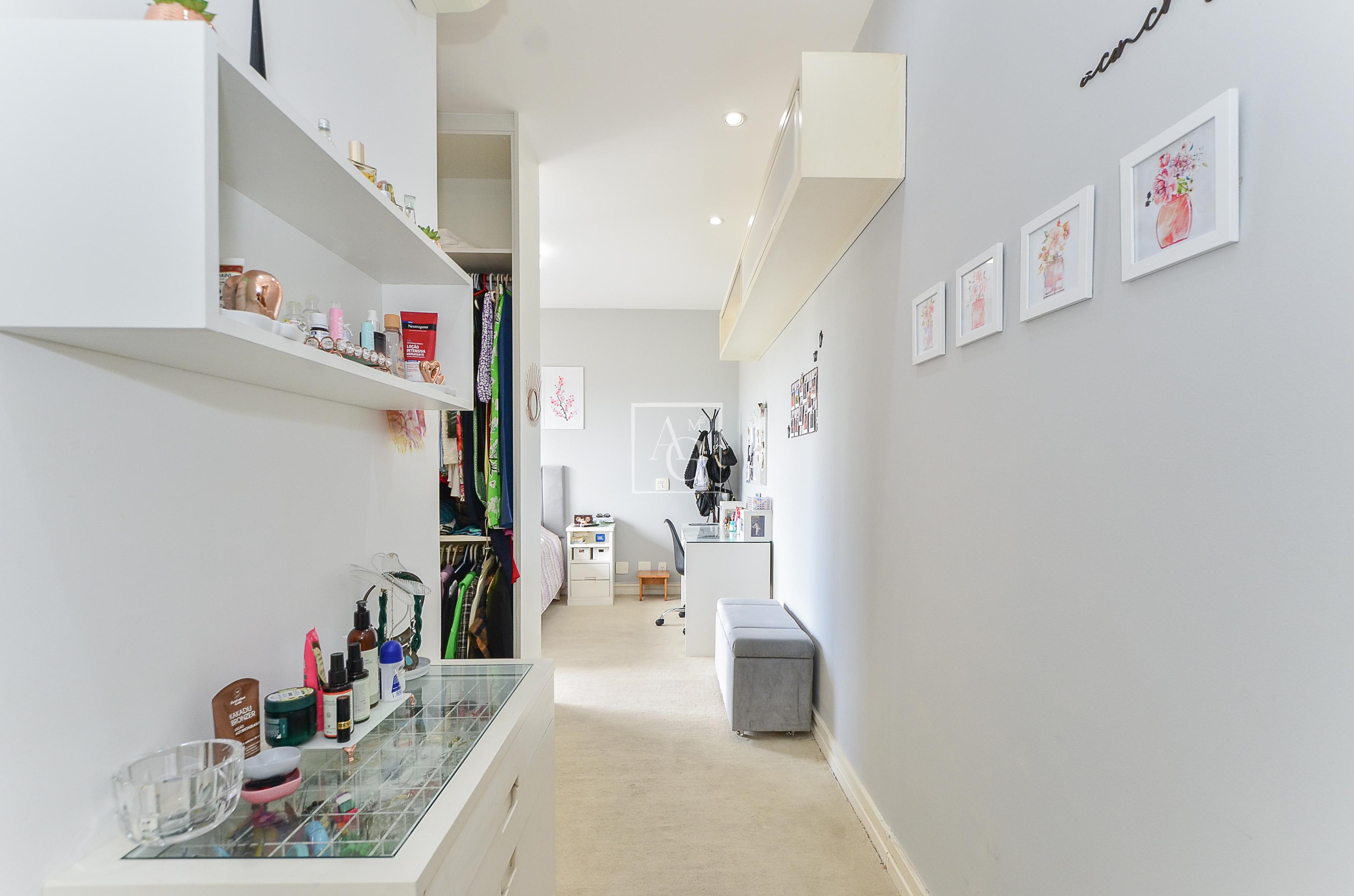 O apartamento possui uma área generosa com ambientes integrados, oferecendo espaço suficiente para acomodar bem todas as suítes.