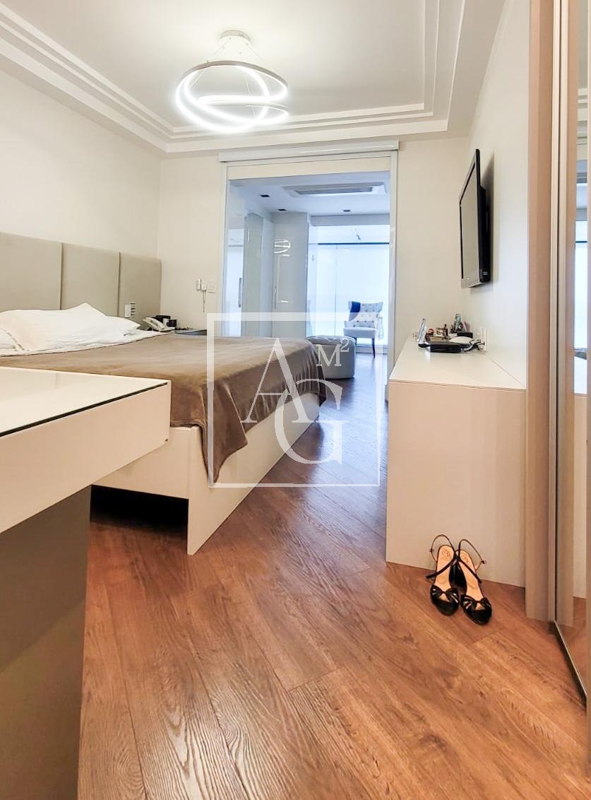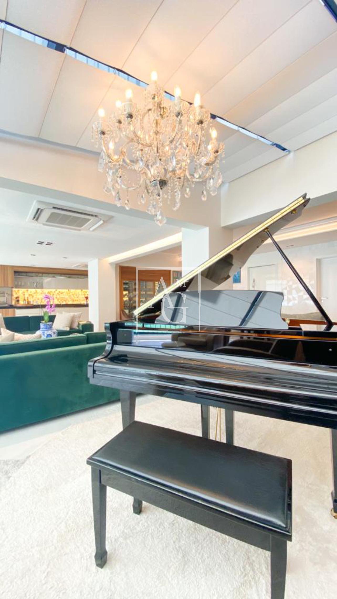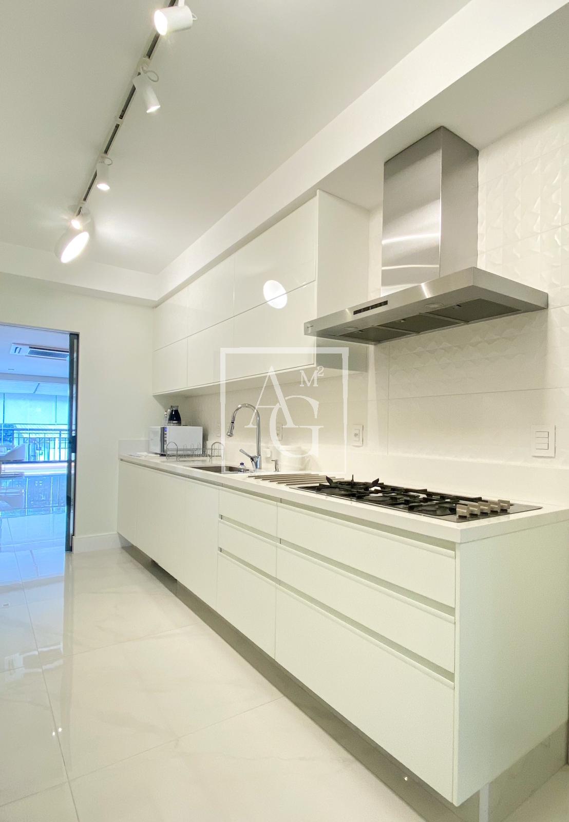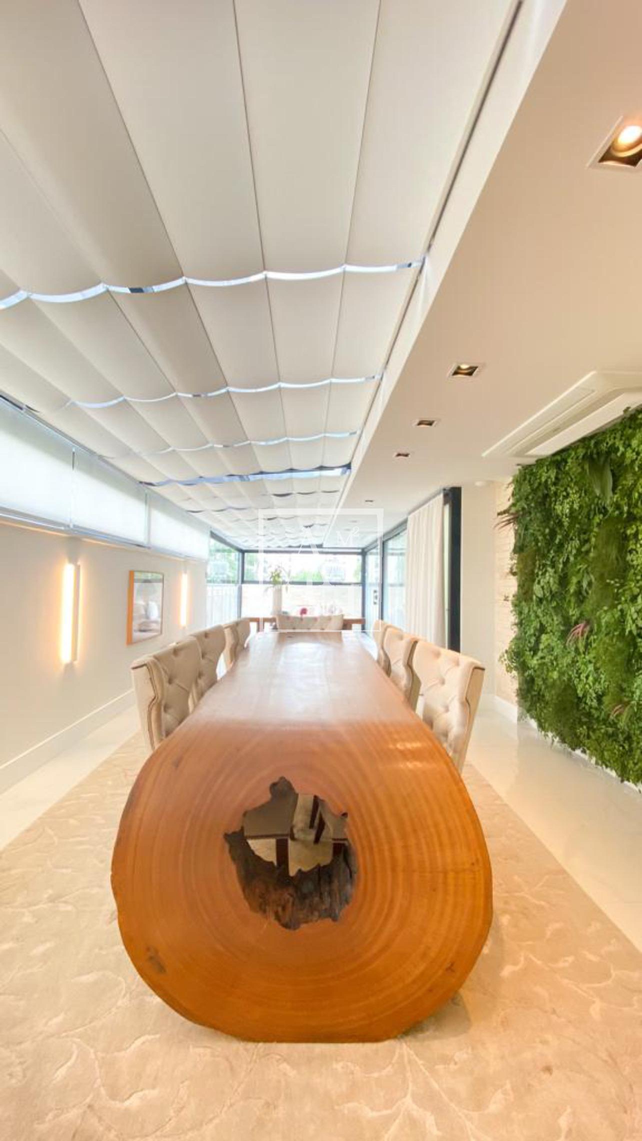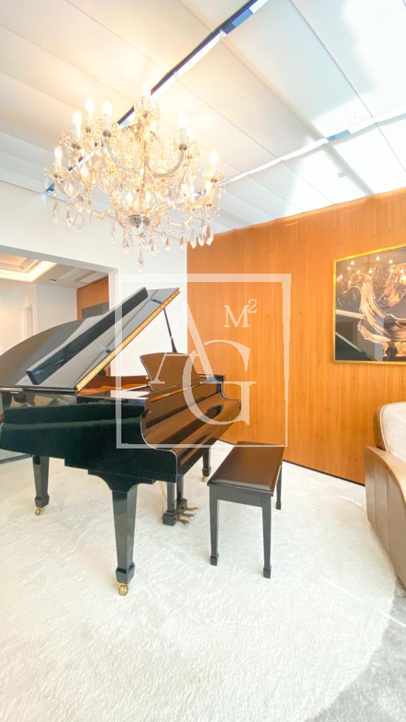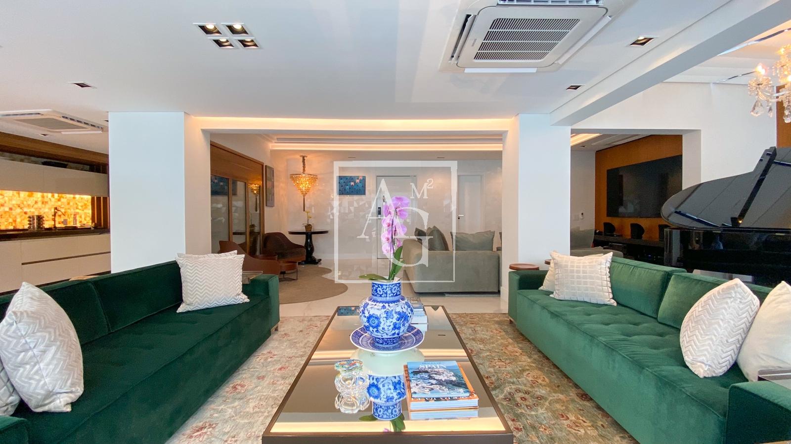 Apartamento com projeto da Débora Aguiar, em condomínio completo. O projeto tem conceito aberto, no qual 45 metros quadrados foram acrescidos ao living, totalizando 370 metros quadrados de área útil. Conta com varanda integrada, cozinha em linhas retas da Florence com acesso ao espaço gourmet por meio de portas de vidro deslizantes da Cinex Arch, sala de almoço espaçosa, dependência de funcionários e três suítes na parte íntima, todas com closet personalizado e saída para a varanda. O apartamento tem projeto de iluminação e automação total, inclusive nas cortinas blackout e no ar-condicionado, com capacidade de 200 mil BTUs. Conta ainda com acabamentos diferenciados e mobiliário de design. O prédio é moderno e tem lazer completo, além de oferecer quatro vagas na garagem e segurança 24 horas.