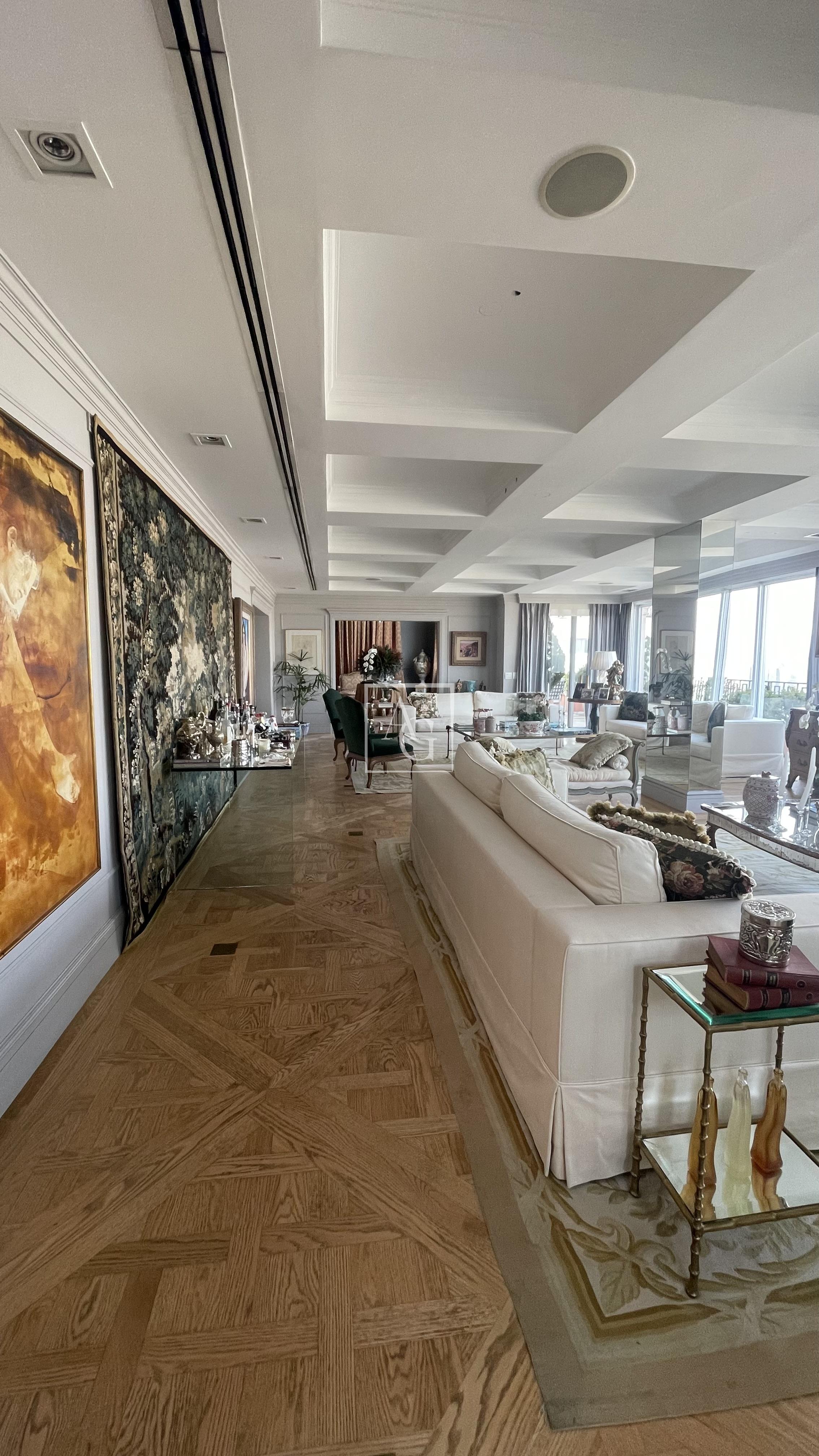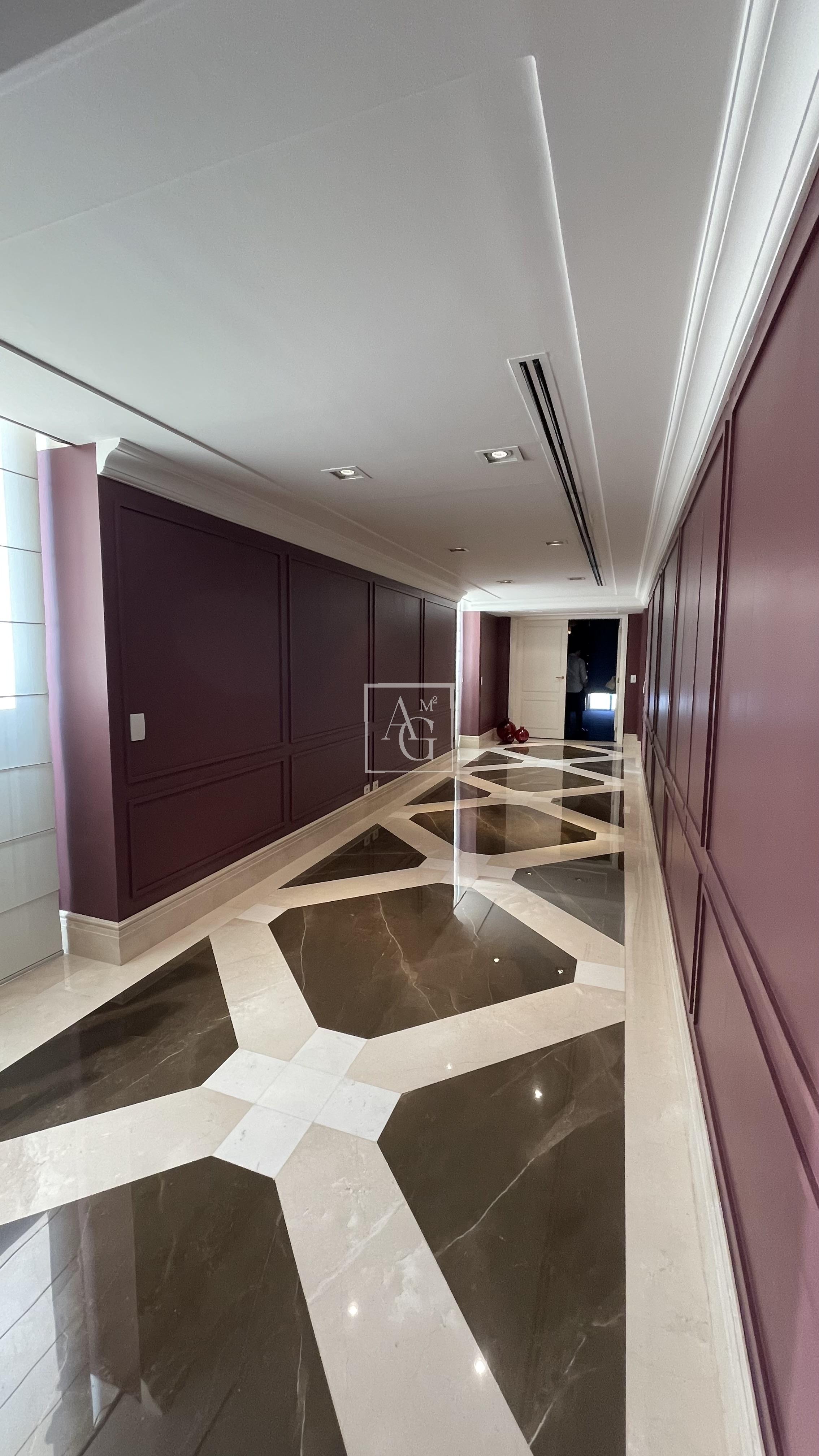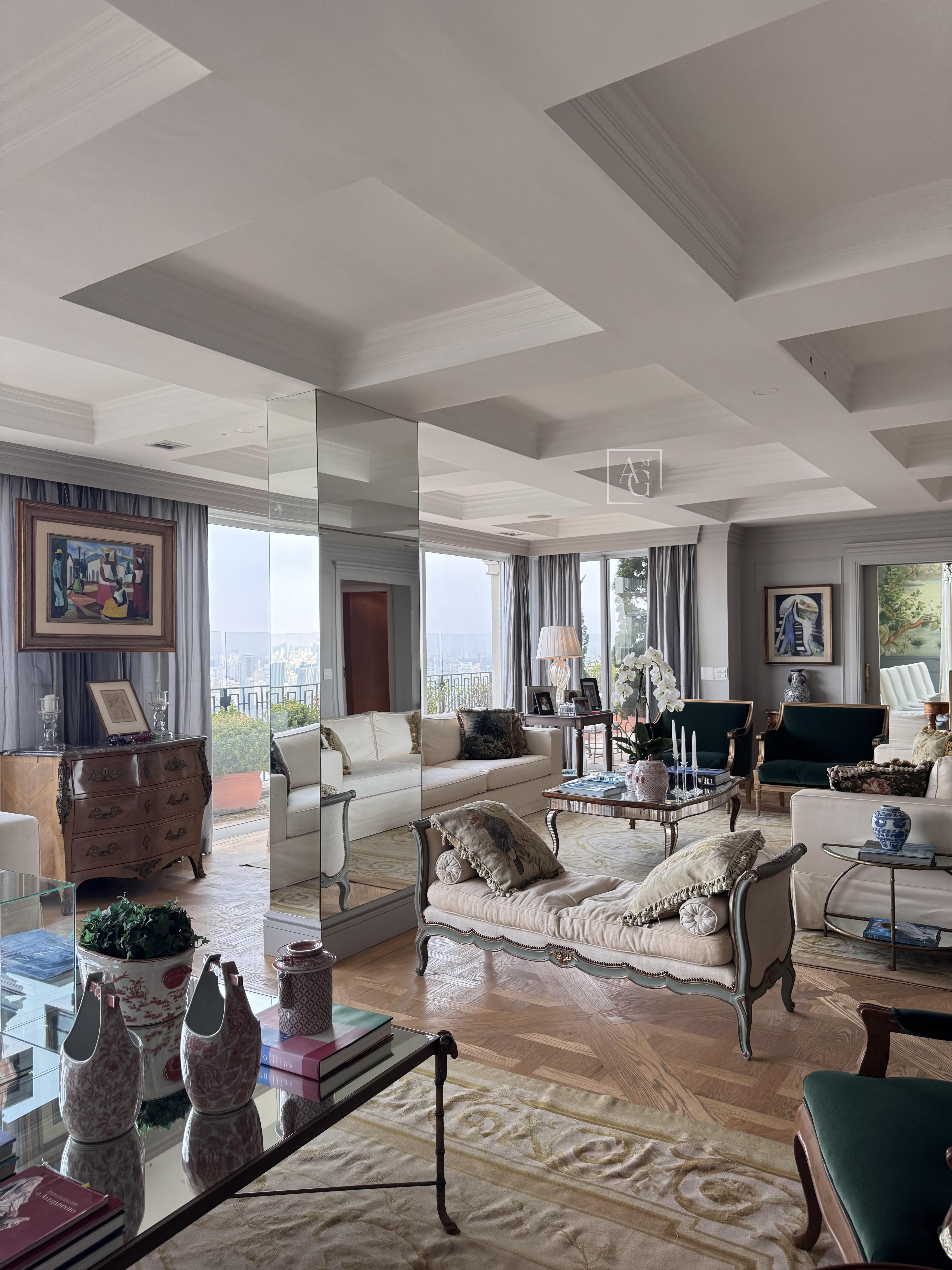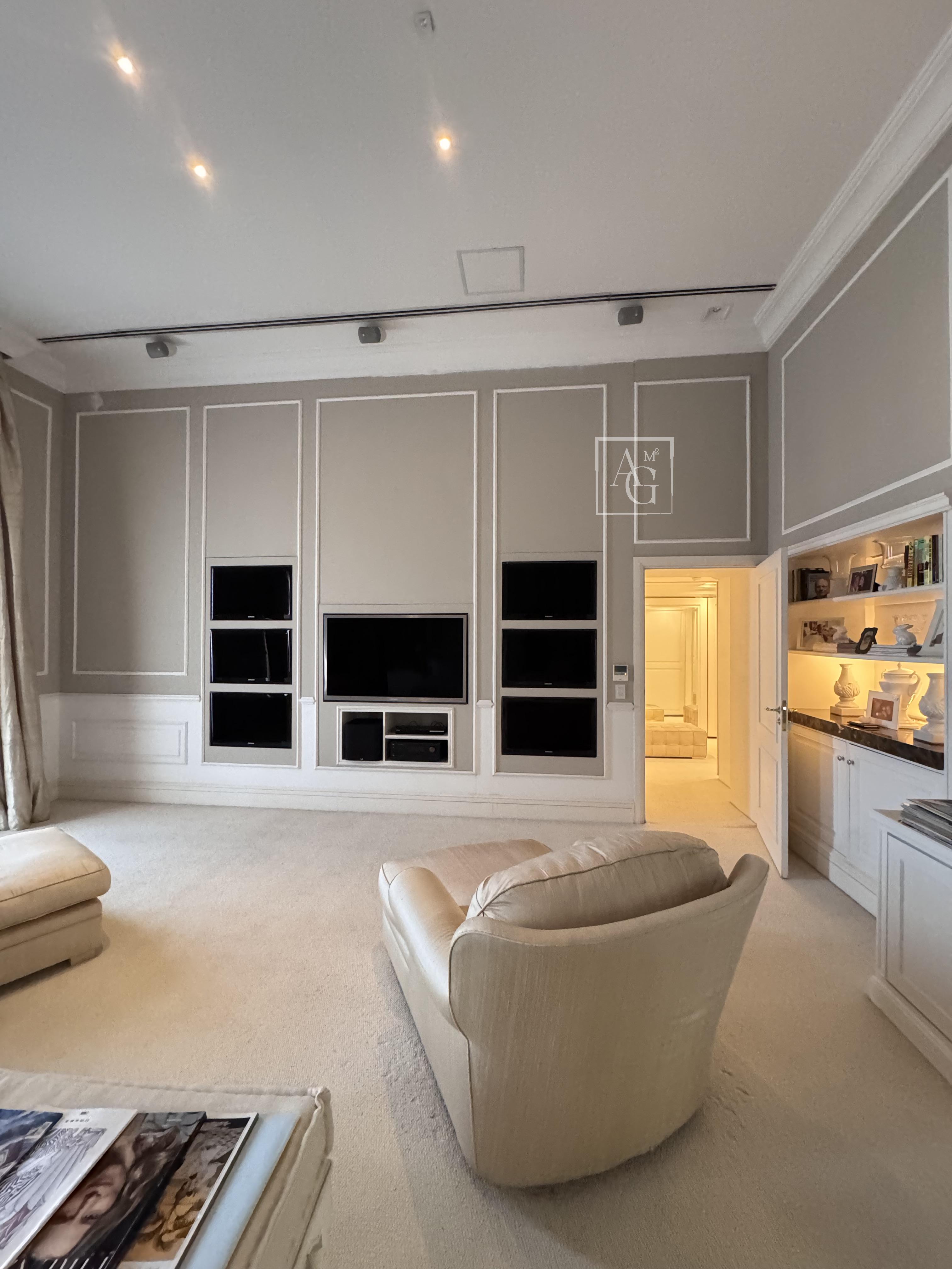 O triplex está localizado no Condomínio Parque Cidade Jardim, na zona sul de São Paulo, com acesso direto ao Shopping Cidade Jardim e com uma unidade do Hospital Albert Einstein dentro do próprio condomínio, além de contar com escolas renomadas nas proximidades. O imóvel ocupa três andares do edifício e possui aproximadamente 1.800 m² de área útil, com sete suítes, incluindo duas suítes master de 350 m² cada, ambas equipadas com saleta privativa, sala de massagem, estação de cabeleireiro, closet duplo e banheiro tipo spa com banheira. As amplas salas contam com pé-direito duplo, garantindo ainda mais imponência e sofisticação aos ambientes. Além das suítes, o triplex dispõe de estúdio de música, salão de jogos, family room, sala de cinema com 16 lugares, home theater, lareira, adega, escritório, sala de almoço, cozinha espaçosa, dependência de empregados e área de cobertura com churrasqueira e lounge. São doze vagas de garagem disponíveis para os moradores.