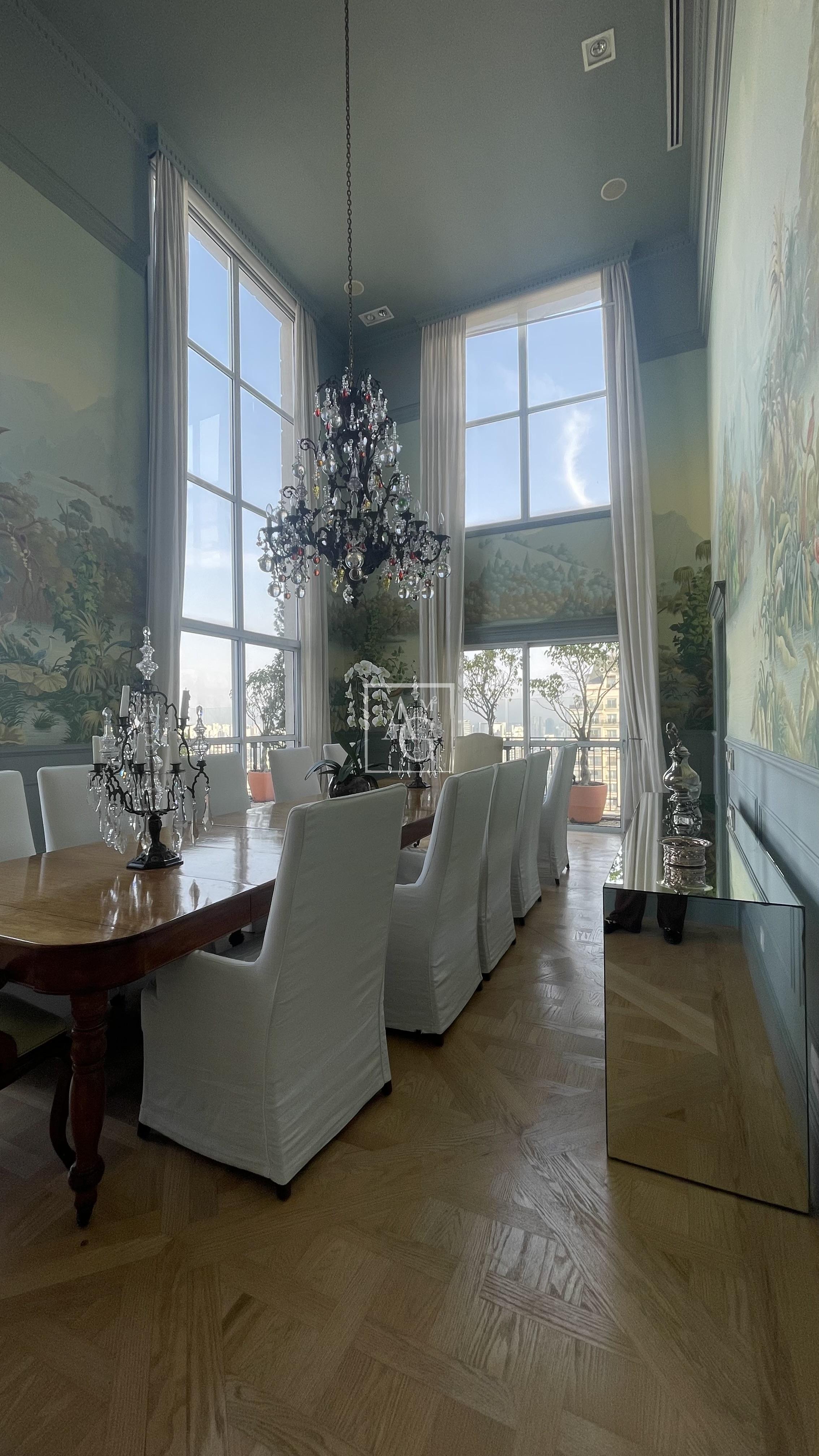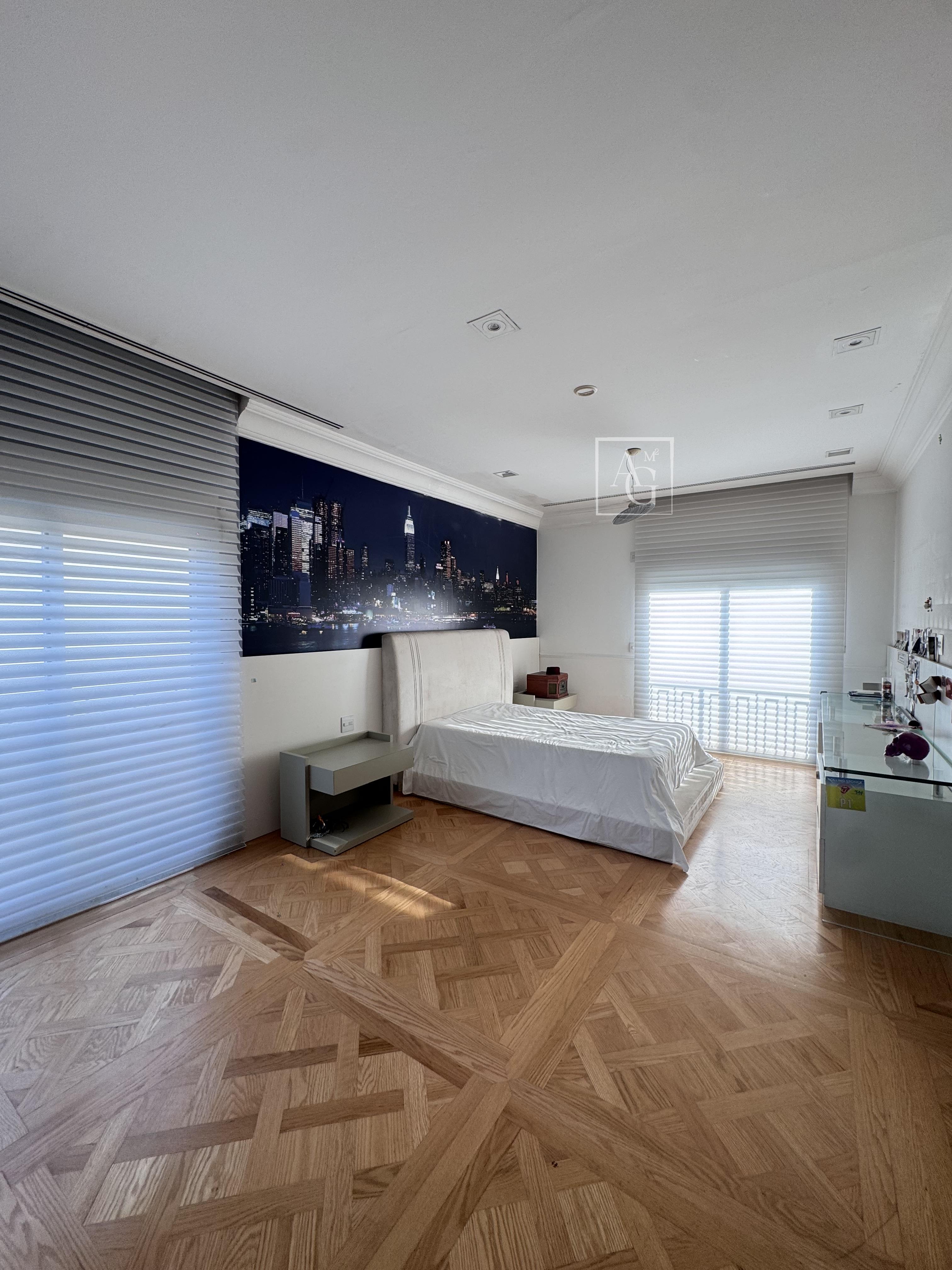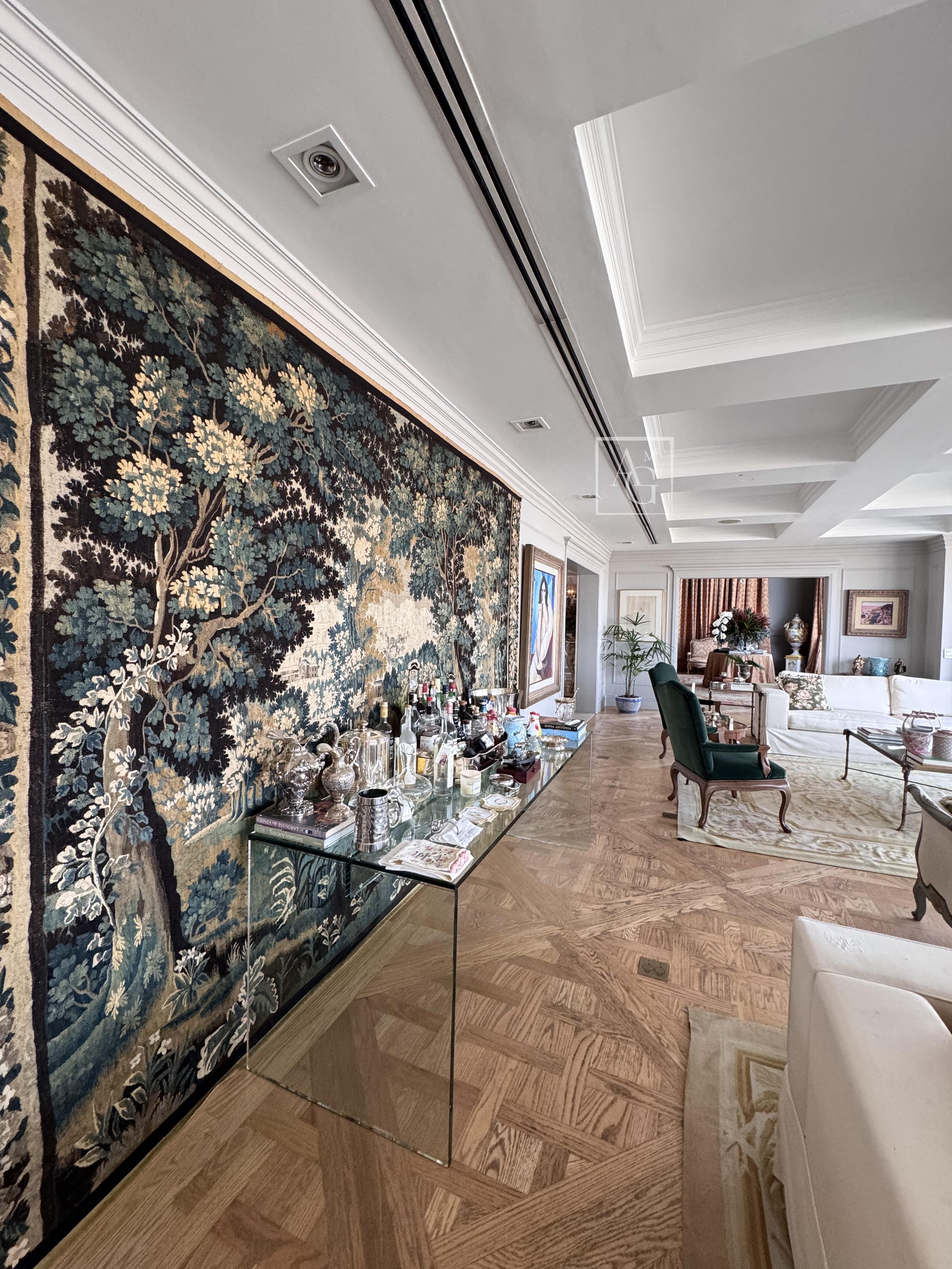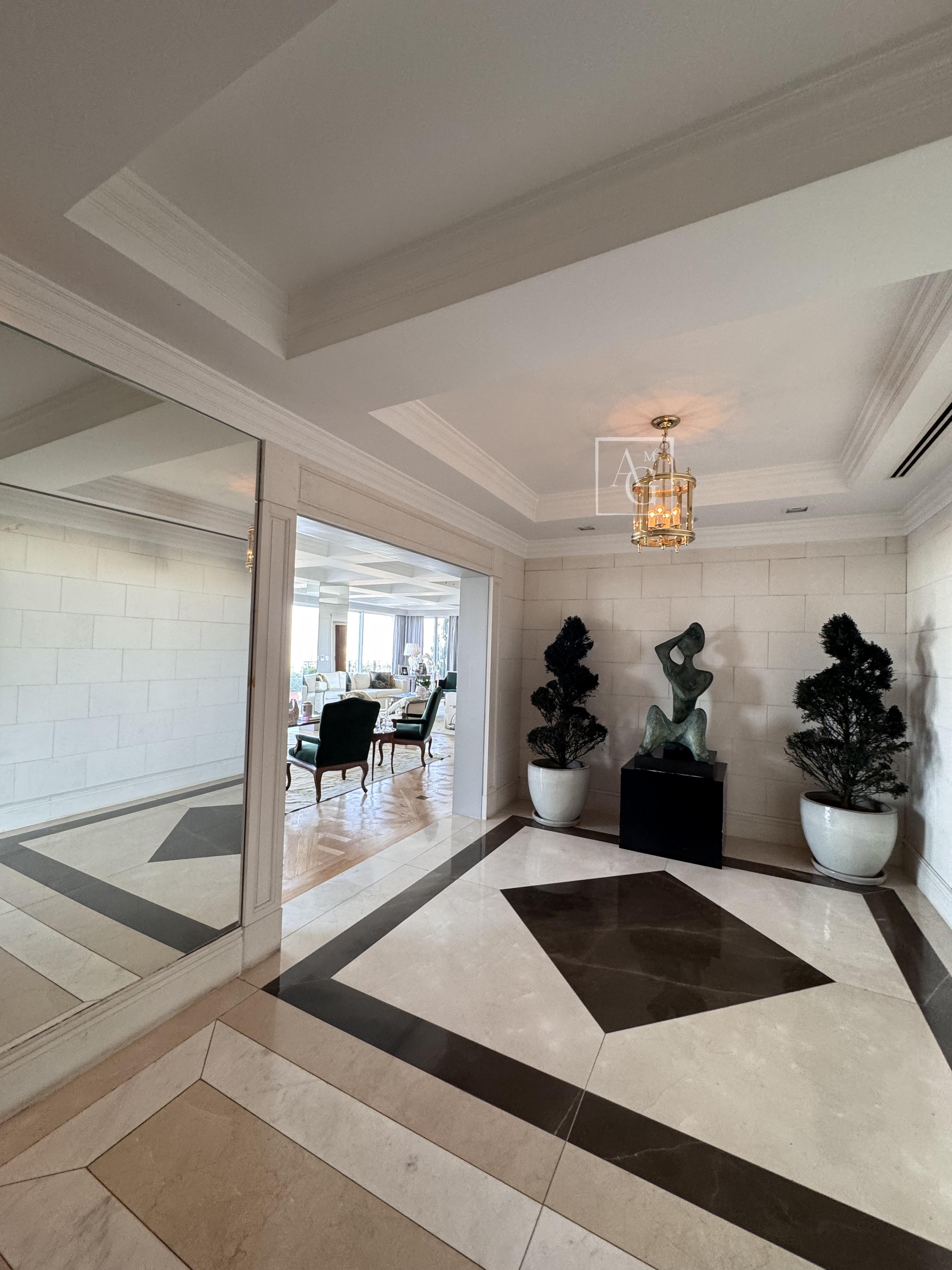 O triplex está localizado no Condomínio Parque Cidade Jardim, na zona sul de São Paulo, com acesso direto ao Shopping Cidade Jardim e com uma unidade do Hospital Albert Einstein dentro do próprio condomínio, além de contar com escolas renomadas nas proximidades. O imóvel ocupa três andares do edifício e possui aproximadamente 1.800 m² de área útil, com sete suítes, incluindo duas suítes master de 350 m² cada, ambas equipadas com saleta privativa, sala de massagem, estação de cabeleireiro, closet duplo e banheiro tipo spa com banheira. As amplas salas contam com pé-direito duplo, garantindo ainda mais imponência e sofisticação aos ambientes. Além das suítes, o triplex dispõe de estúdio de música, salão de jogos, family room, sala de cinema com 16 lugares, home theater, lareira, adega, escritório, sala de almoço, cozinha espaçosa, dependência de empregados e área de cobertura com churrasqueira e lounge. São doze vagas de garagem disponíveis para os moradores.